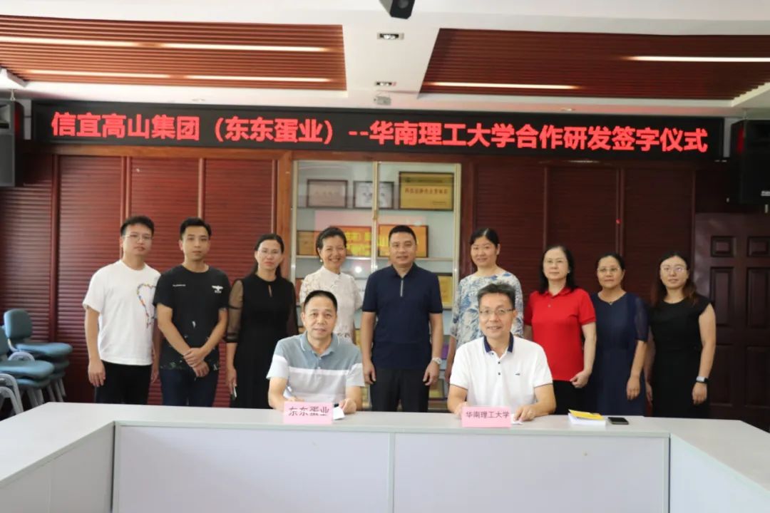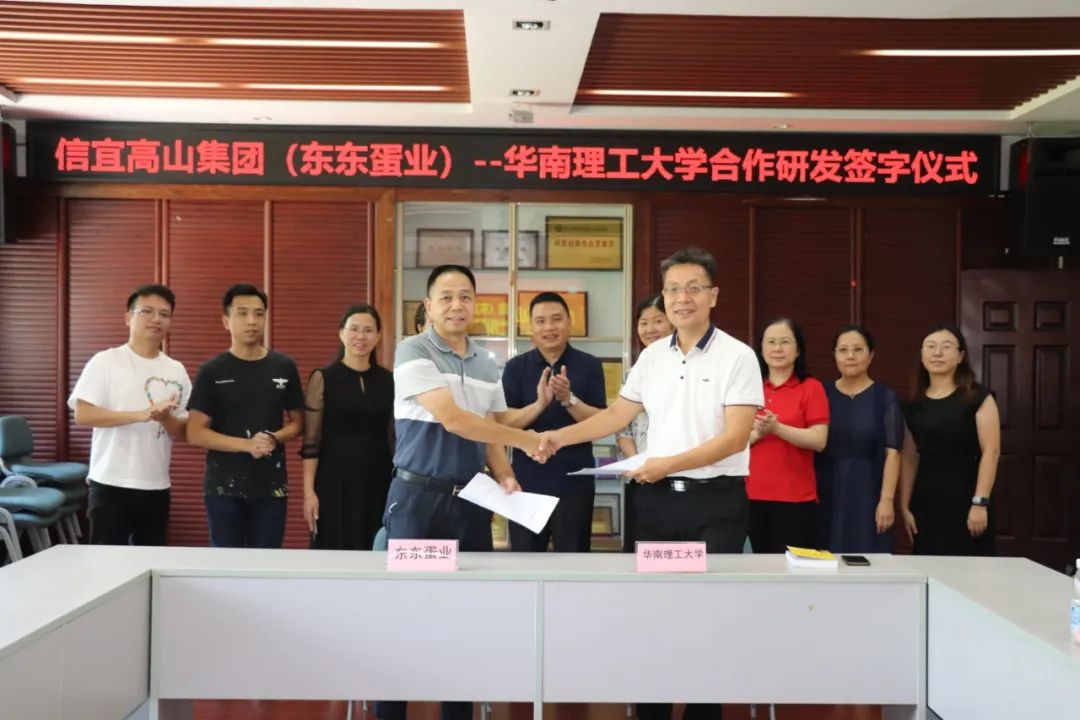 2022年9月3日上午,東東蛋業(yè)(廣東)有限公司與華南理工大學(xué)食品學(xué)院戰(zhàn)略合作簽約儀式在廣州舉行,高山集團(tuán)掌舵人梁其佳、東東蛋業(yè)總經(jīng)理黎來(lái)鳳和團(tuán)隊(duì)代表梁財(cái)權(quán)、梁鑫,華南理工大學(xué)食品科學(xué)與工程學(xué)院黨委書記譚志偉、碩士生導(dǎo)師李汴生教授及其創(chuàng)新團(tuán)隊(duì)代表參加了簽約儀式,召開技術(shù)座談會(huì),并決定成立華南理工大學(xué)食品學(xué)院(李汴生教授)信宜創(chuàng)新中心。