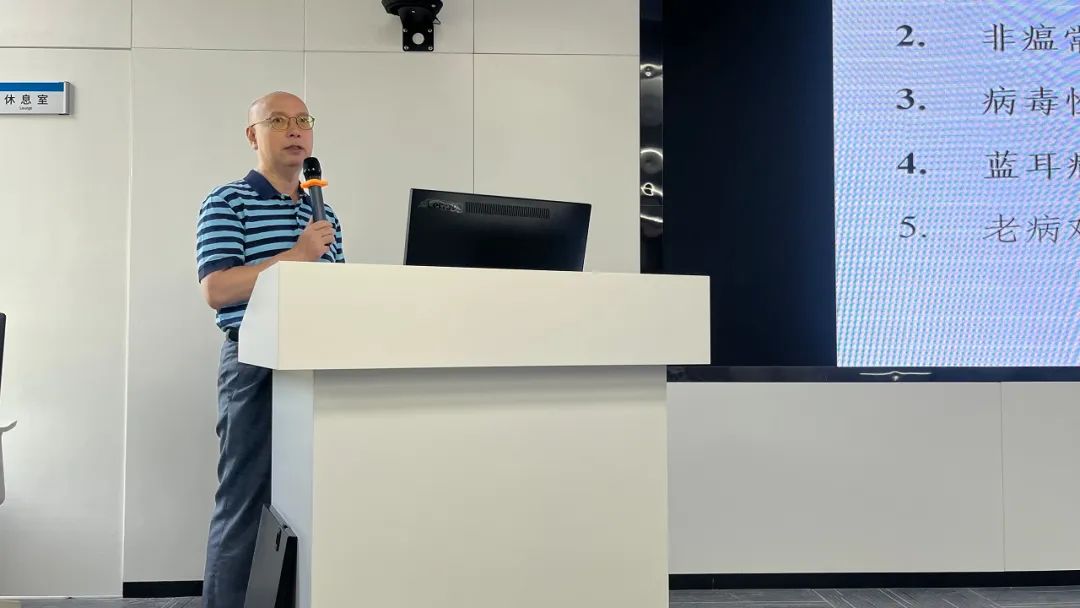 華南農(nóng)業(yè)大學(xué)獸醫(yī)學(xué)院教授、博士生導(dǎo)師、國家農(nóng)業(yè)部獸藥疫苗評審委員會委員、生豬產(chǎn)業(yè)體系豬病崗位科學(xué)家賀東生教授作《豬低免混感綜合征及其防控》報告,首先介紹了什么是低免混感綜合征,同時講解了低免混感綜合征的多種表現(xiàn)和發(fā)病機理,指出低免混感綜合征是中國最大的豬病問題之一,最后分享了用高山221方案提升豬病免疫能力是豬場生存和獲取高利潤的核心關(guān)鍵。