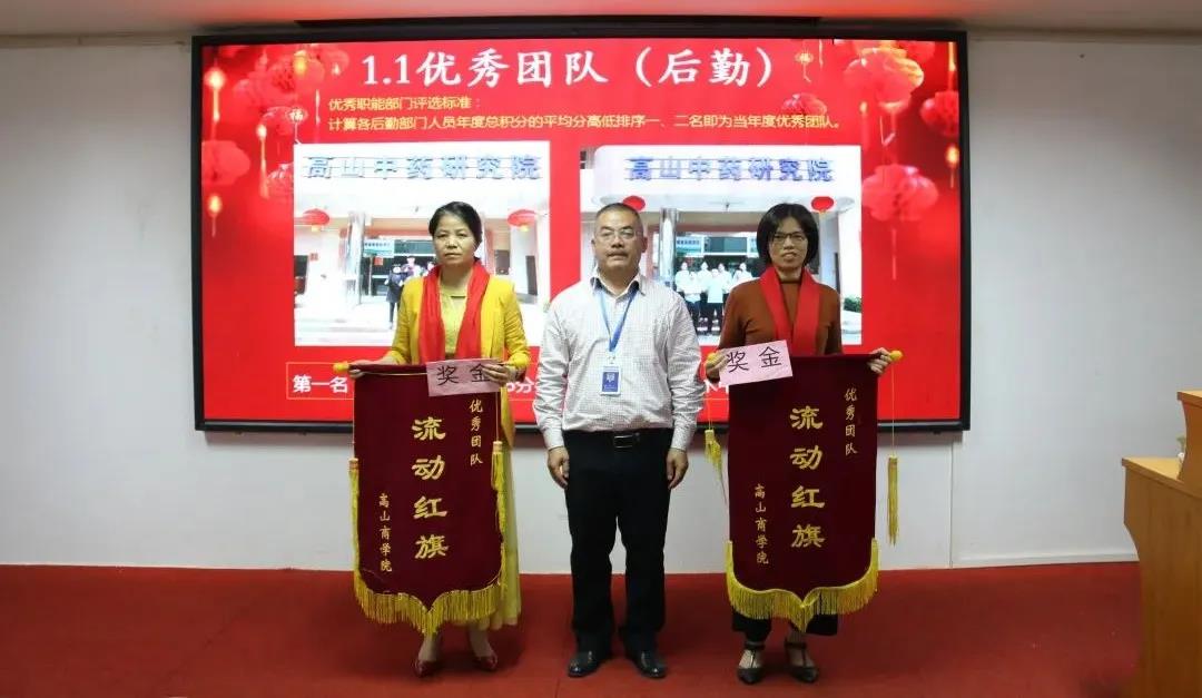 高山商學(xué)院執(zhí)行院長(zhǎng)鐘飛燕為獲得“高山商學(xué)院優(yōu)秀培訓(xùn)師”的員工頒獎(jiǎng)