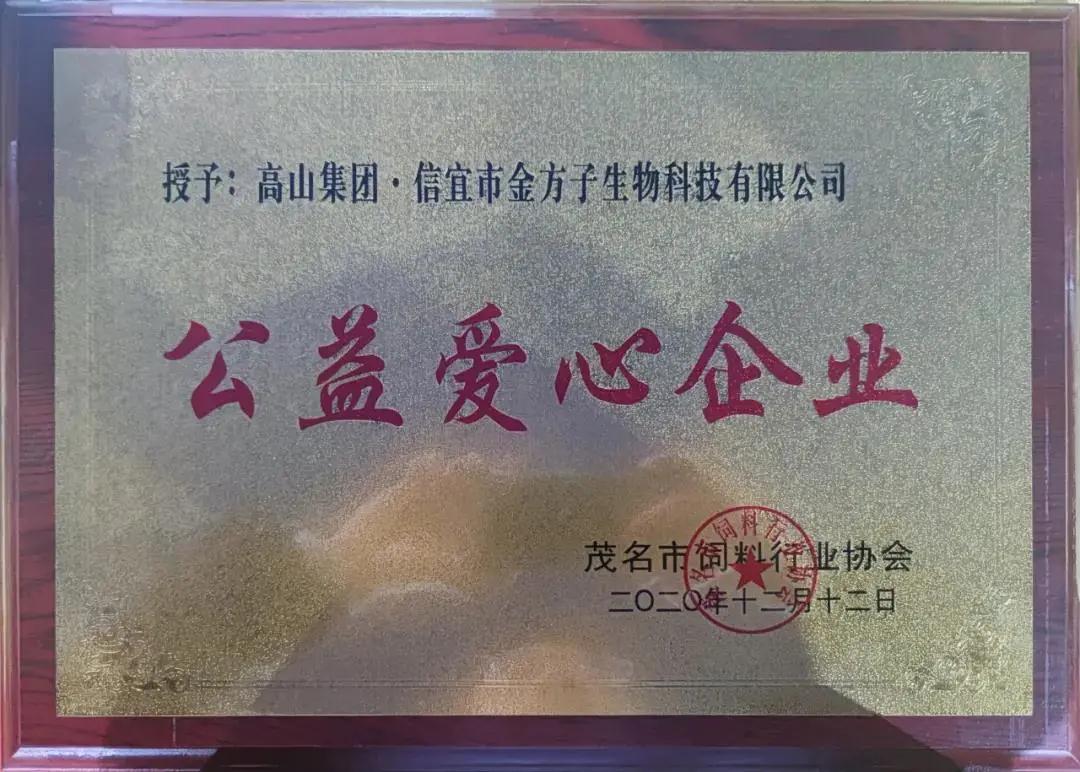 2020年12月12日,第六屆飼料論壇暨2020茂名市飼料行業(yè)協(xié)會年會在茂名成功舉辦。高山集團旗下,信宜市金方子生物科技有限公司喜獲慈善貢獻獎。