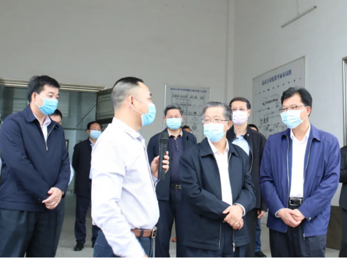 2020年4月14日下午,廣東省工業(yè)和信息化廳廳長涂高坤、鄭勇明副廳長等一行到高山集團(tuán)調(diào)研考察指導(dǎo)工作,茂名市委常委黃玉華、信宜市委書記羅漢杰、信宜市市長王土瑞、信宜市委副書記梁小東等一行陪同,高山集團(tuán)董事長梁其佳作匯報(bào)介紹。