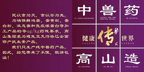 中獸藥,高山造。高山,從1986年創(chuàng)牌,始終堅(jiān)持走中獸藥著名品牌的企業(yè)發(fā)展道路。為確保高山戰(zhàn)略合作養(yǎng)殖集團(tuán)企業(yè)的肉蛋奶產(chǎn)品達(dá)到0ug/kg的藥殘不檢出標(biāo)準(zhǔn),為適應(yīng)人們對優(yōu)質(zhì)肉蛋奶品的追求需要,更因應(yīng)國家實(shí)施抗生素“減量化行動(dòng)”和2020年無抗新時(shí)代的發(fā)展需要,隨著新《飼料原料目錄》的實(shí)施細(xì)則陸續(xù)發(fā)布,因應(yīng)中醫(yī)中藥在畜禽生產(chǎn)中的推廣與應(yīng)用,中藥天然植物粗提物系列飼料添加產(chǎn)品應(yīng)運(yùn)而生。