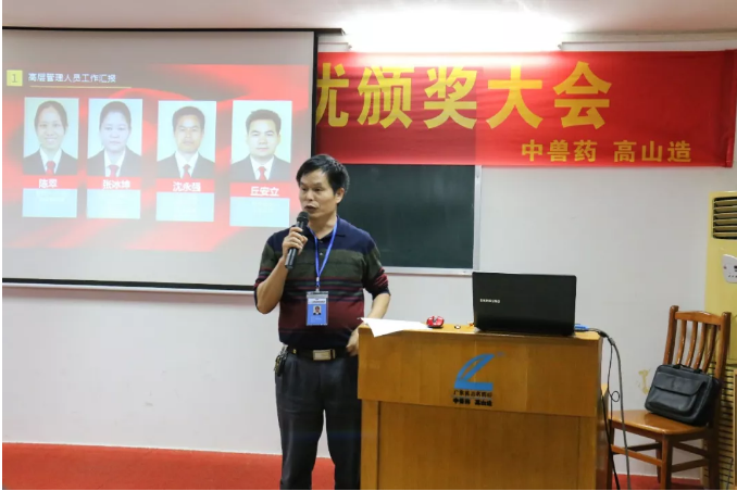 財(cái)務(wù)副總丘安立為技術(shù)中心、生產(chǎn)中心、中藥提取車間和中藥散劑車間頒發(fā)“優(yōu)秀團(tuán)隊(duì)”獎(jiǎng)