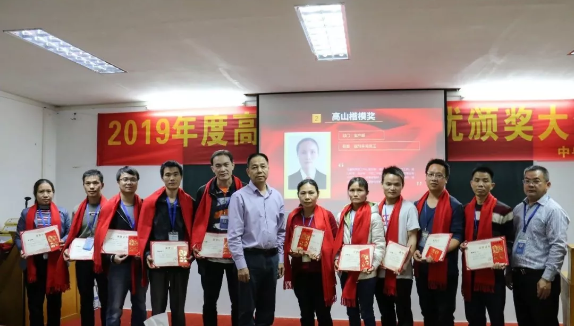 集團(tuán)董事長(zhǎng)梁其佳和財(cái)務(wù)副總丘安立為獲得“高山楷模獎(jiǎng)”員工頒獎(jiǎng)