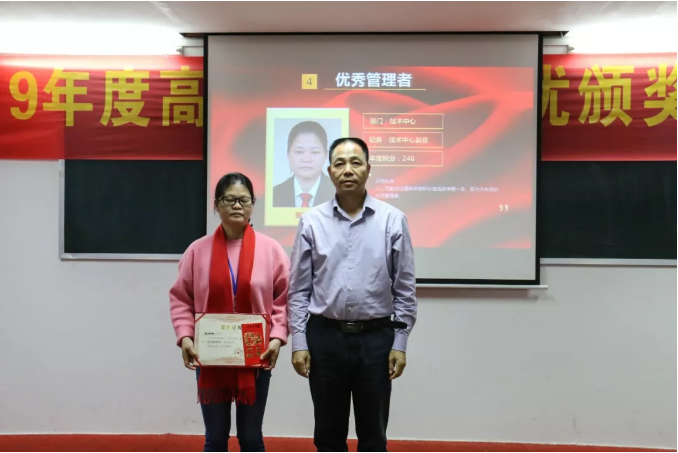 集團(tuán)董事長(zhǎng)梁其佳為技術(shù)副總經(jīng)理張冰坤頒發(fā)“優(yōu)秀管理者”獎(jiǎng)