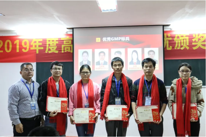財(cái)務(wù)副總丘安立給獲得“優(yōu)秀GMP標(biāo)兵”員工頒獎(jiǎng)