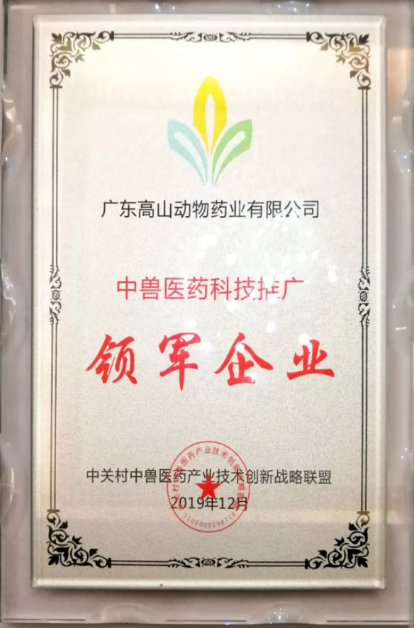 2019年12月14日下午,中關村中獸醫(yī)藥產業(yè)技術創(chuàng)新戰(zhàn)略聯盟會員大會暨頒獎典禮在北京舉行,廣東高山獲“中獸醫(yī)藥科技推廣領軍企業(yè)”榮譽稱號。