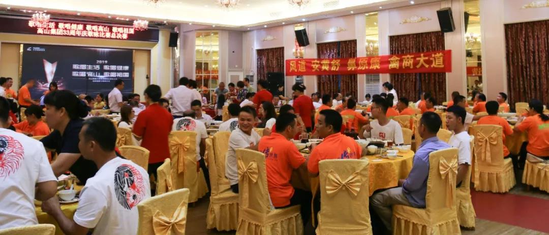 時(shí)光如水,歲月如歌。高山集團(tuán)從揚(yáng)帆起航到滿載星光,攜手共進(jìn),風(fēng)雨兼程,拼博奮斗,輝煌成就,2019年6月25日迎來了創(chuàng)牌33周年的喜慶時(shí)刻。值第二季度營銷會議暨高山集團(tuán)創(chuàng)牌33周年之際,高山集團(tuán)舉辦了“歌唱生活,歌唱健康,歌唱高山,歌唱祖國”歌詠比賽為高山慶祝生日,參會人員及高山大家庭成員共百余人參加了晚宴。