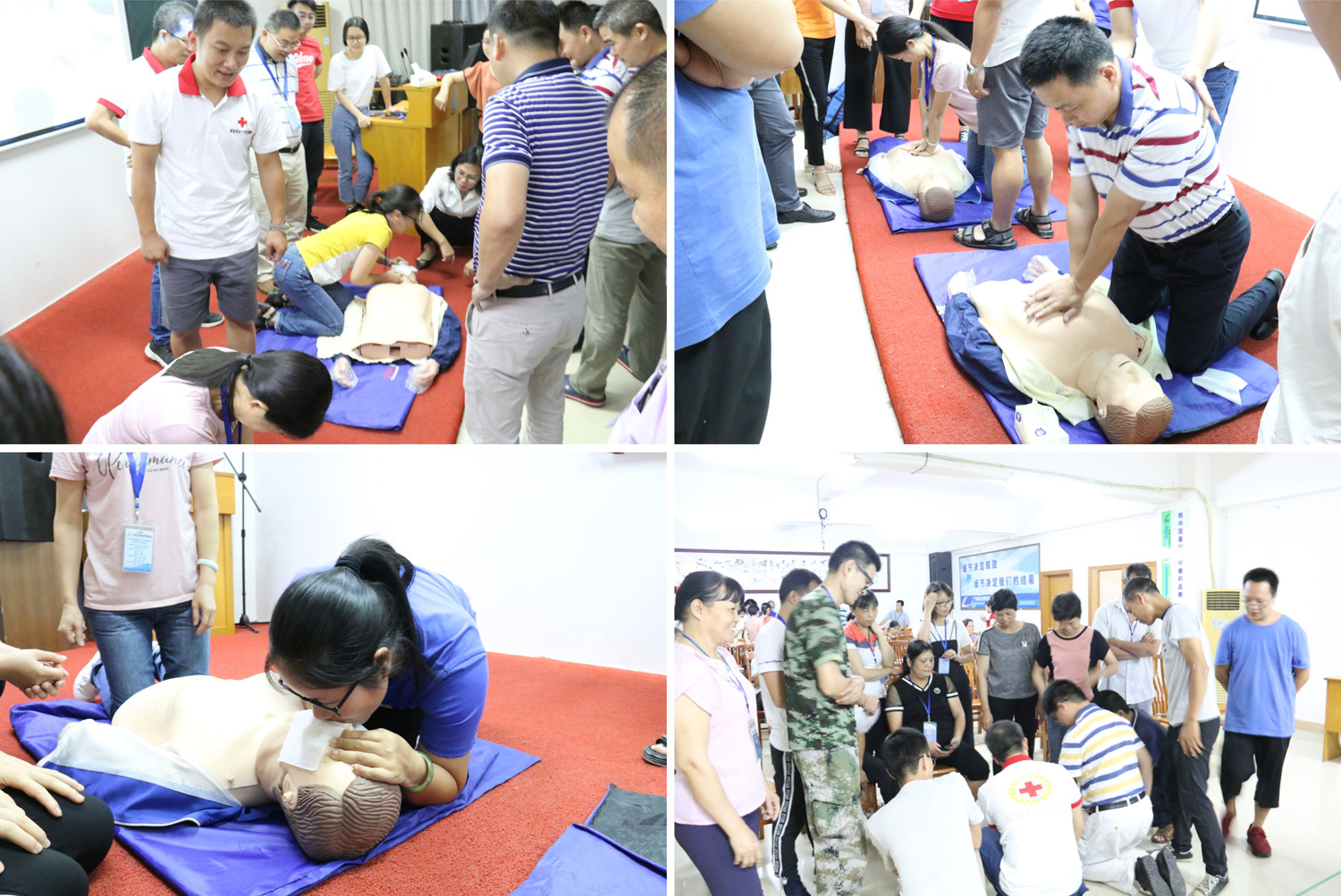 現(xiàn)場進行了仿真人模的人人實操練習(xí),紅十字會人員準備了仿真人模進行心肺復(fù)蘇。