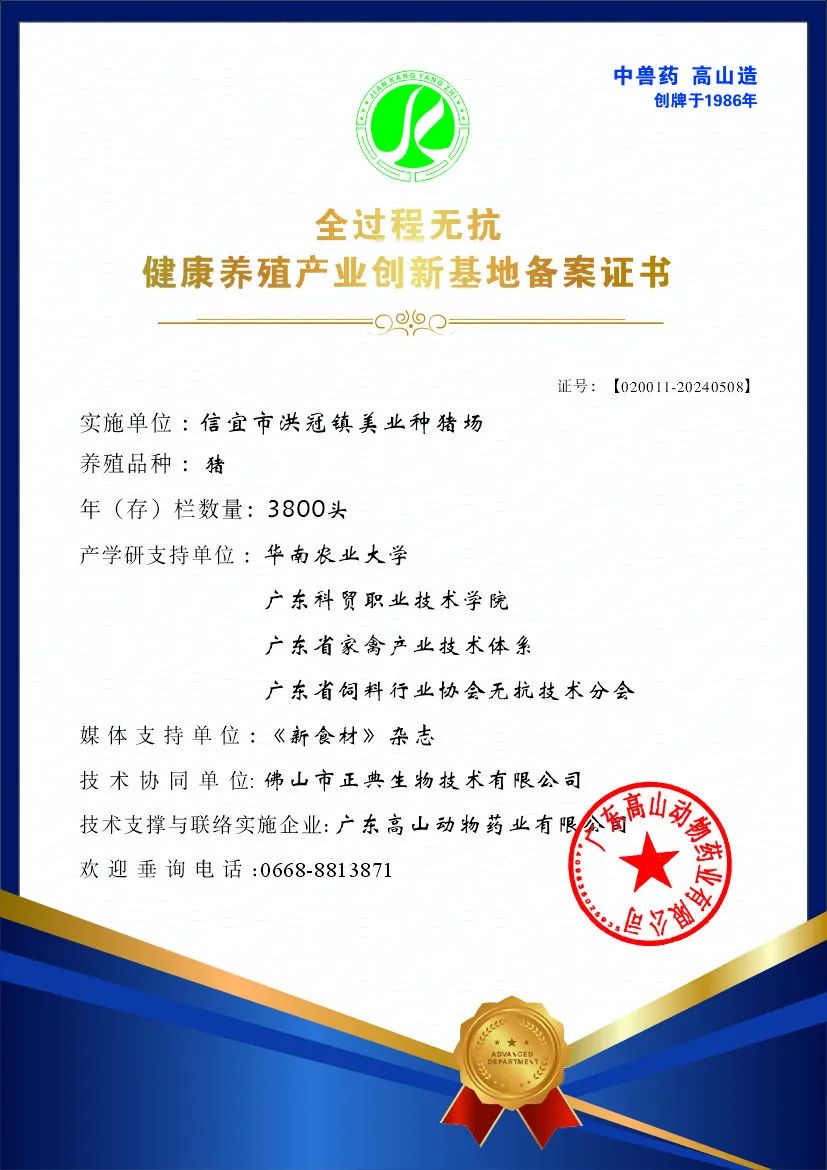 2024年3月,高山正式面向全國發(fā)布:開展“尋找100家《全過程無抗健康養(yǎng)殖產業(yè)創(chuàng)新基地》示范場”活動。