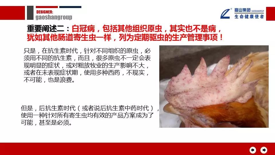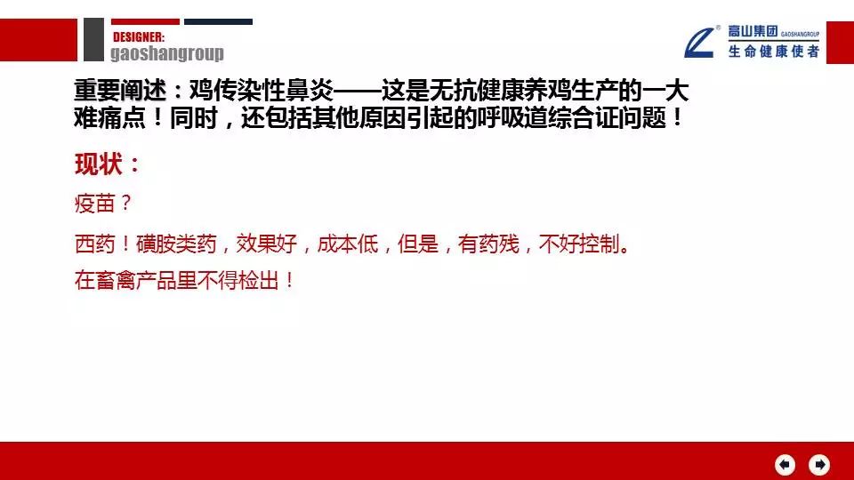 彭激夫教授的報(bào)告指出,中藥無抗健康養(yǎng)殖理念隨高山而來,高山從90年代開始堅(jiān)持中獸藥治療、預(yù)防和保健的中藥大健康理念,喉炎凈、強(qiáng)力粵威龍、正冠樂等經(jīng)典產(chǎn)品,歷經(jīng)三十年市場(chǎng)而經(jīng)久不衰。我們要因應(yīng)行業(yè)發(fā)展趨勢(shì)和養(yǎng)殖企業(yè)對(duì)環(huán)境重視程度的變化,構(gòu)建畜牧人命運(yùn)共同體,并始終以健康作為前提。報(bào)告分別針對(duì)蛋雞、豬的最大影響因素和非洲豬瘟帶來的機(jī)會(huì)等進(jìn)行了深度闡述。