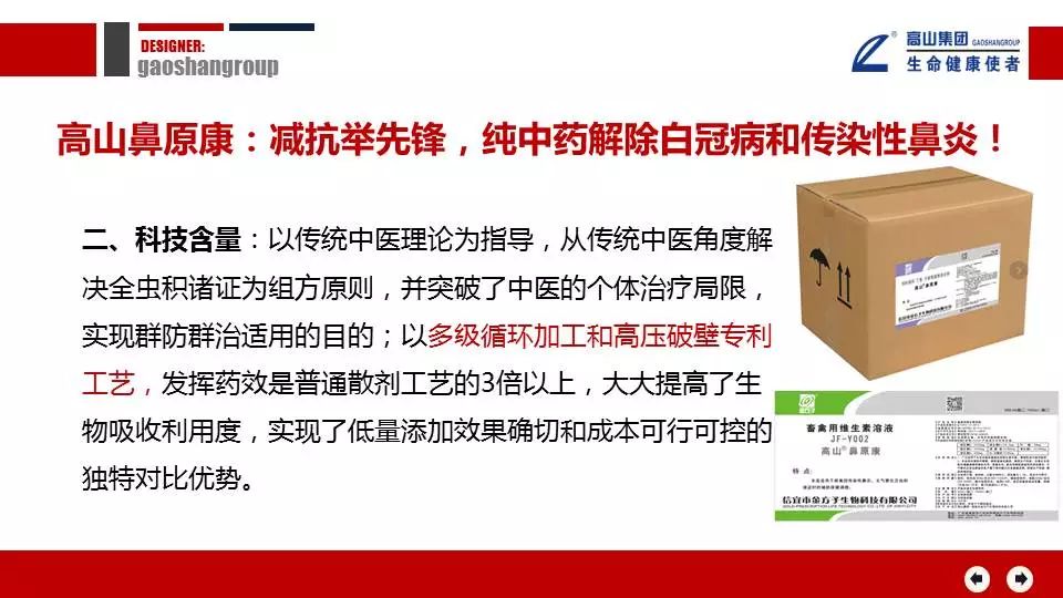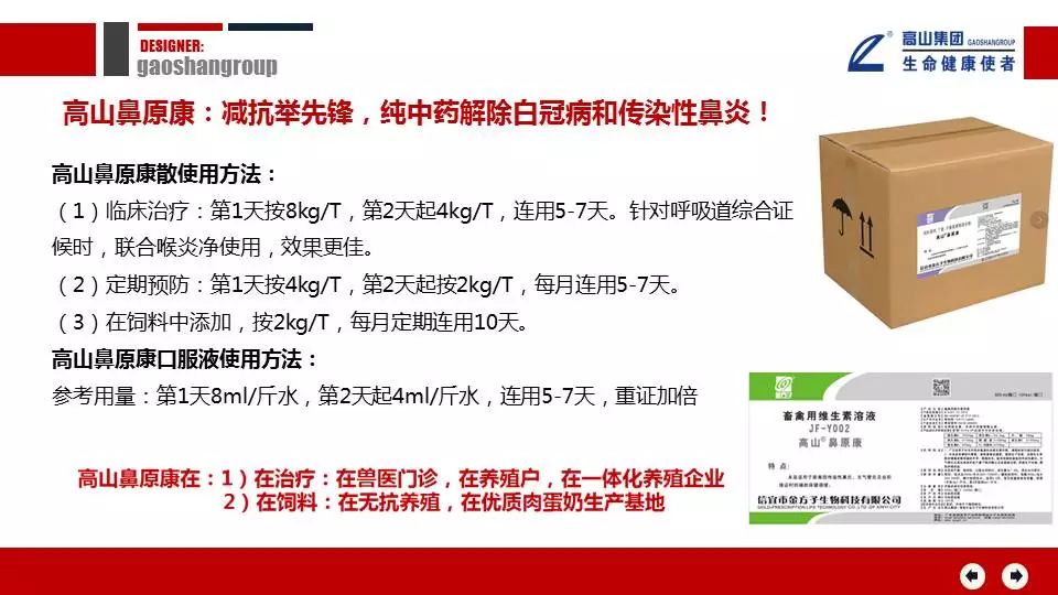 3、白冠病和傳染性鼻炎。這兩個(gè)病貫穿春夏秋冬季節(jié),交錯(cuò)流行。從3月開始,長江流域,從5月開始,黃河流域發(fā)生較多。傳播速度快,死亡率高,生產(chǎn)性能丟失多,是這個(gè)病的共性,損失巨大。用高山鼻原康,鼻原康發(fā)病即用,按4kg/噸,重證8kg/噸,連用5天,用了馬上見效,與磺胺類藥成本對(duì)比相差不大,且效果最確切。