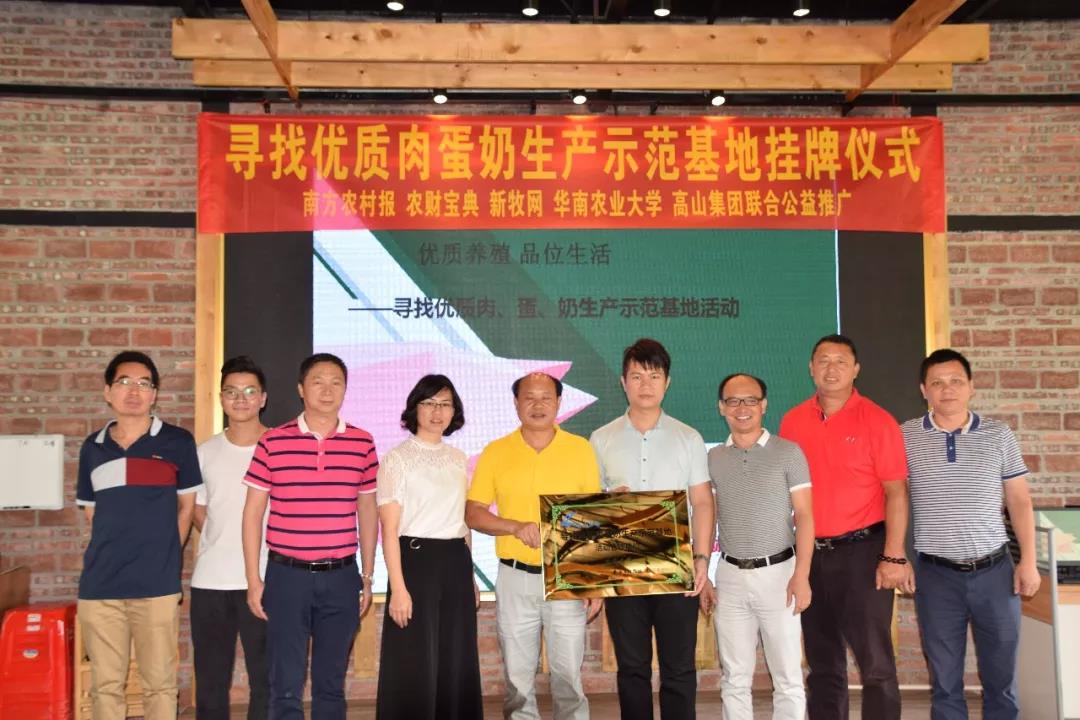 2018年7月12日,南方農(nóng)村報(bào)、《農(nóng)財(cái)寶典》和新牧網(wǎng)、華南農(nóng)業(yè)大學(xué)聯(lián)合高山集團(tuán)共同推廣“尋找優(yōu)質(zhì)肉蛋奶生產(chǎn)示范基地”全國(guó)公益活動(dòng)第二站在以“食為鮮”著稱的廣府開平市“合民生鮮”農(nóng)莊隆重舉行掛牌儀式。