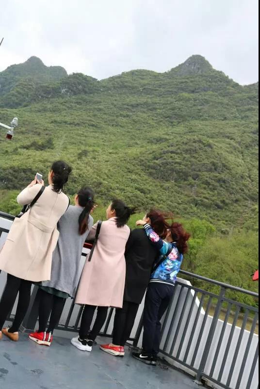 他們游走在風光秀麗,空氣清新,如詩如畫的桂林,一路風光無限好,“舟行碧波上,人在畫中游”。