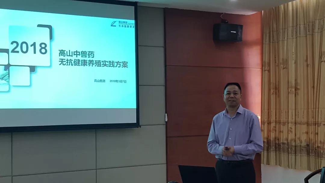 高山集團(tuán)董事長梁其佳介紹高山中獸藥無抗健康養(yǎng)殖實(shí)踐方案
