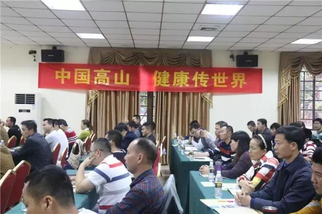 高山集團梁董事長作《做強高山,各方面都要強-今天只講高山加盟形象店》主題報告。