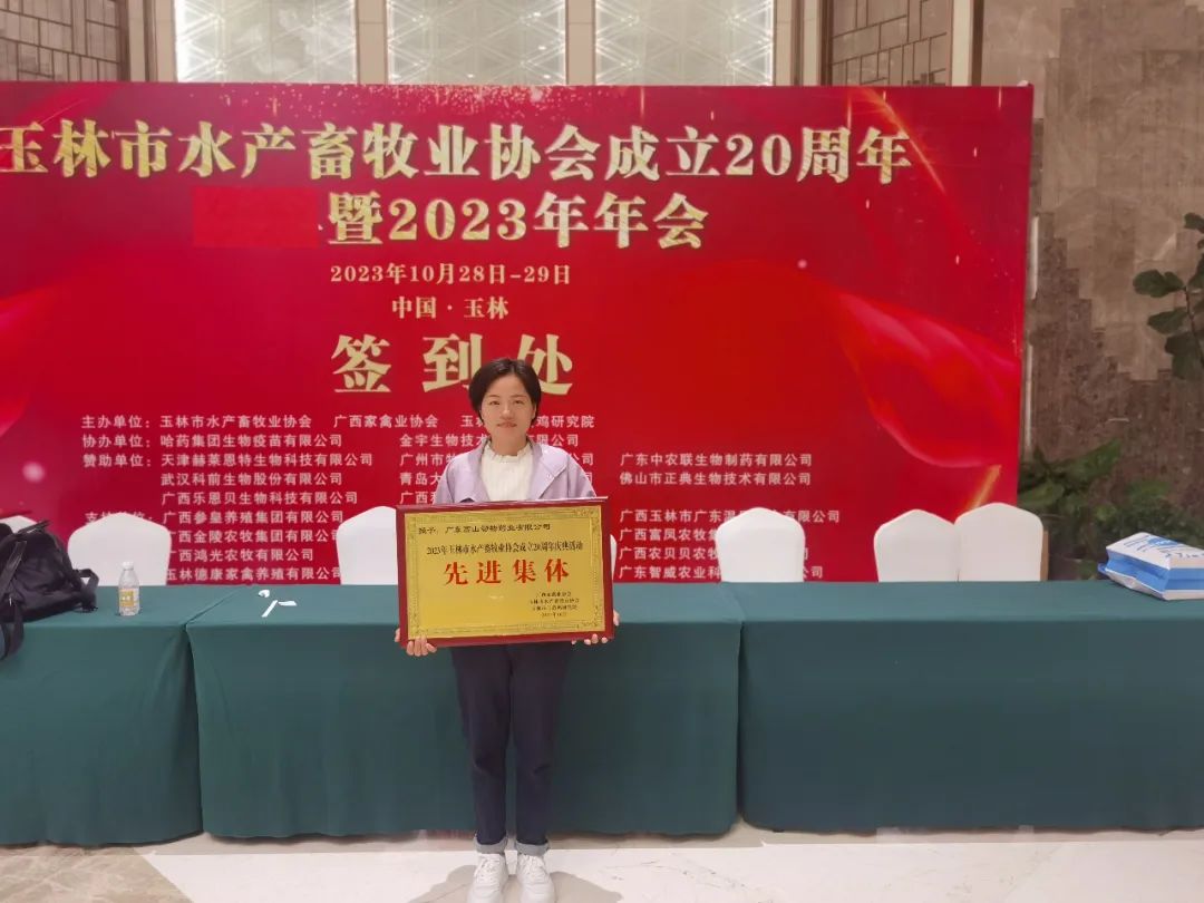 2023年10月29日,玉林市水產(chǎn)畜牧業(yè)協(xié)會(huì)成立20周年慶典暨2023年年會(huì),在玉林中鼎東方文華大酒店舉辦,廣東高山動(dòng)物藥業(yè)有限公司獲得“先進(jìn)集體”的榮譽(yù)稱號(hào)。高山公司營(yíng)銷經(jīng)理梁祖榮與黃桂梅出席參加,黃桂梅經(jīng)理代表上臺(tái)接受表彰,并領(lǐng)取了榮譽(yù)獎(jiǎng)牌。