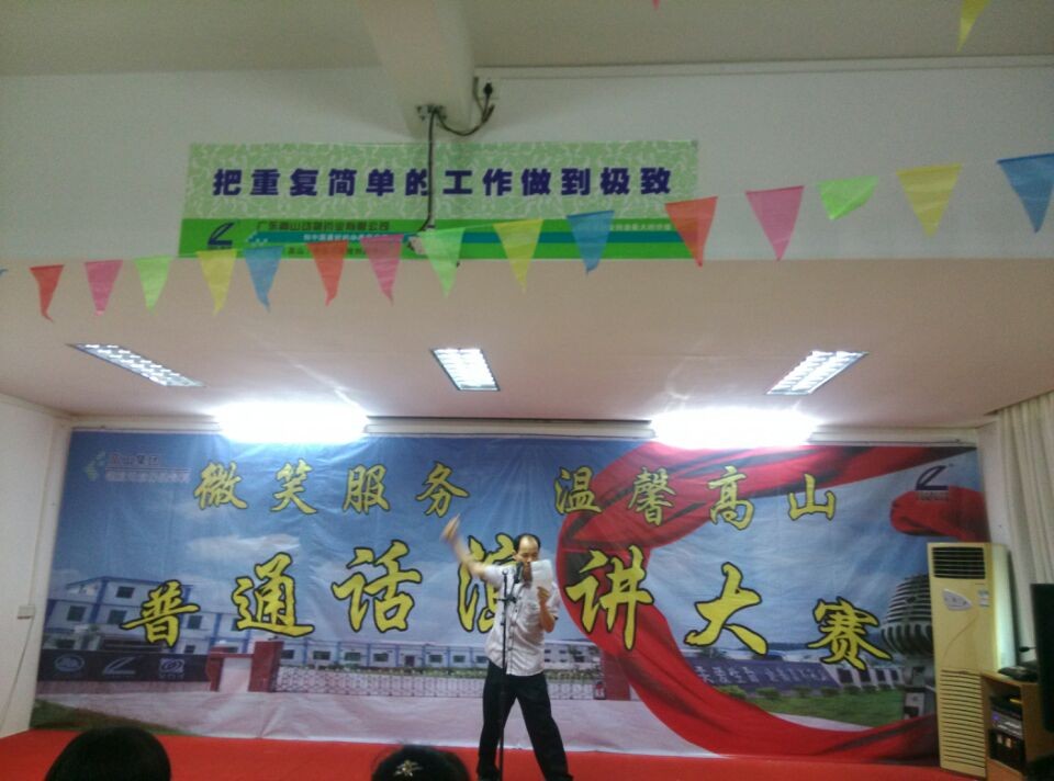 2014年5月3日,籍五四青年節(jié)到來之際,為提高全員的普通話水平,高山商學(xué)院聯(lián)合工會、婦聯(lián)、義工團在集團總部舉辦以“微笑服務(wù)、溫馨高山”為主題的普通話演講比賽。集團員工踴躍參與,共有40位戰(zhàn)友報名參加了演講比賽。