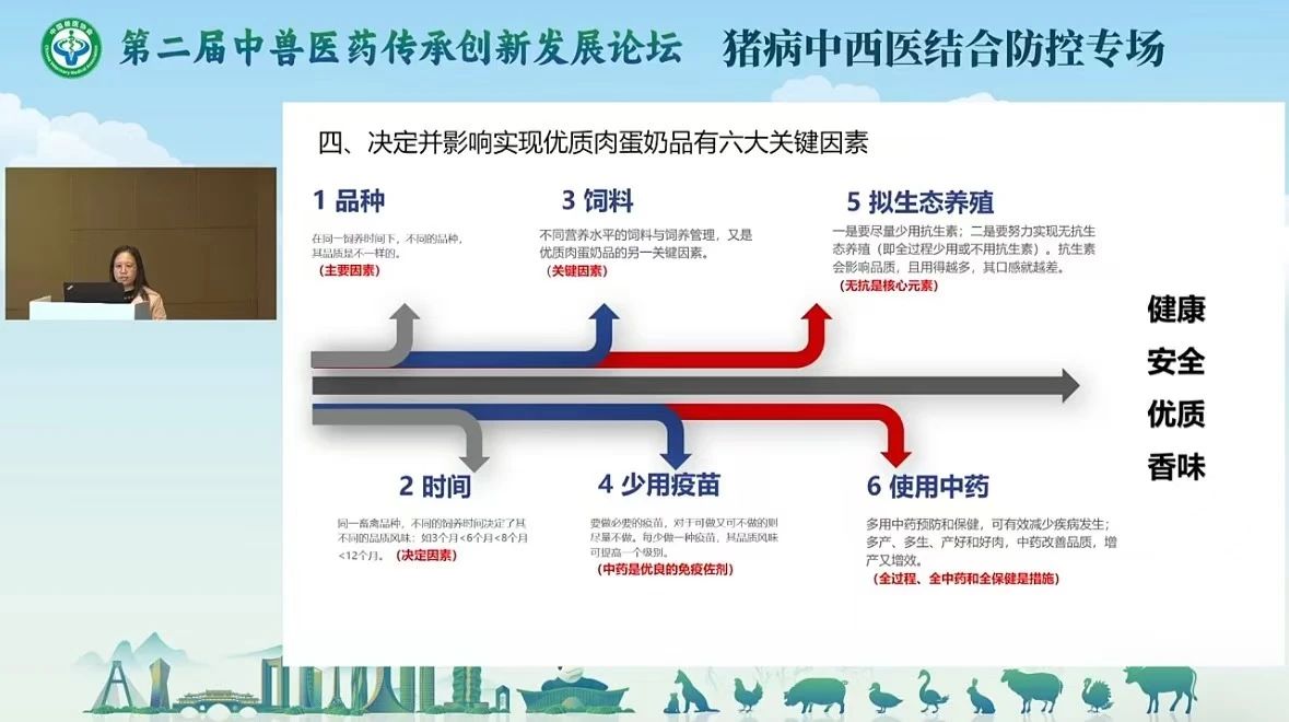 論壇上,高山集團(tuán)營銷總監(jiān)陳翠代表作《思求經(jīng)旨,守正創(chuàng)新——中獸藥在全過程無抗健康養(yǎng)殖高端優(yōu)質(zhì)肉蛋奶品應(yīng)用上的重新定義》報告。她指出,高山中獸藥致力于為餐桌提供全過程無抗養(yǎng)殖的高端優(yōu)質(zhì)肉蛋奶品,為人類美好生活提供健康的優(yōu)質(zhì)肉蛋奶品,這是中獸藥在全過程無抗健康養(yǎng)殖高端餐桌肉蛋奶品應(yīng)用上的重新定義,包括全過程無抗養(yǎng)蛋雞、全過程無抗健康養(yǎng)豬、全過程無抗健康養(yǎng)閹雞、全過程無抗健康養(yǎng)鴿等。