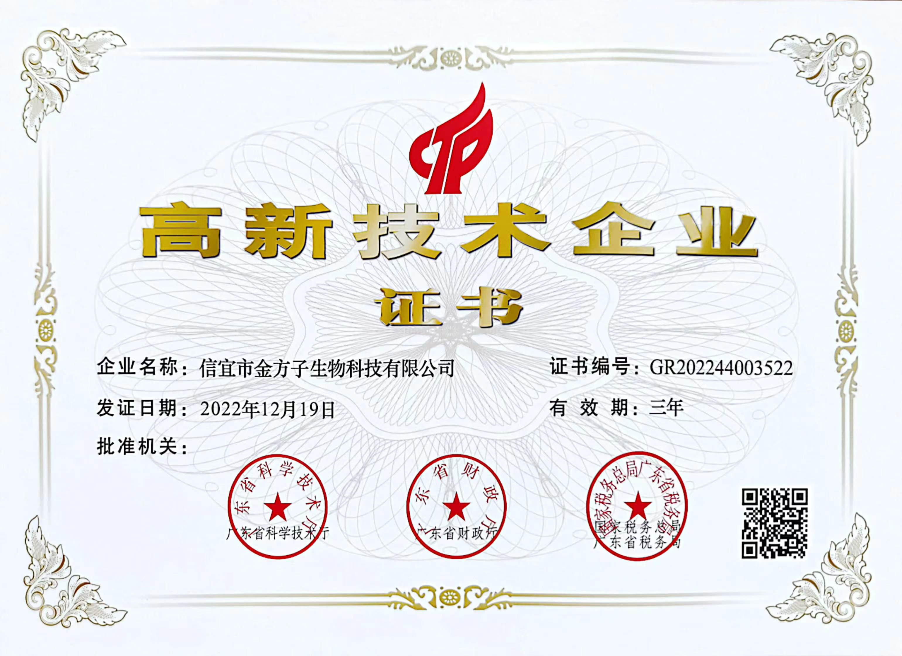 “高山”和“金方子”高新技術(shù)企業(yè)證書