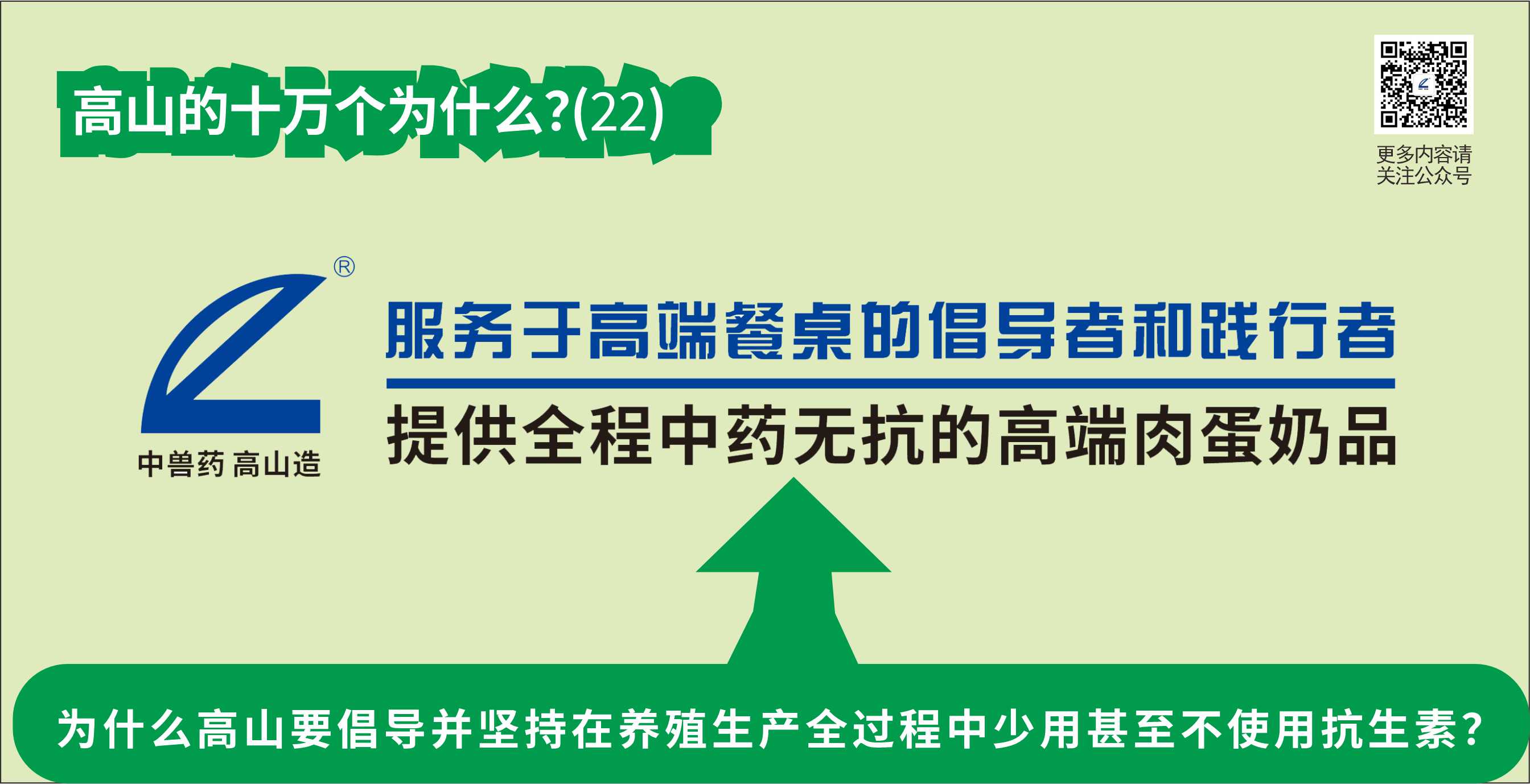 抗生素曾經(jīng)作為促長劑和疾病預(yù)防手段被廣泛應(yīng)用于畜禽養(yǎng)殖生產(chǎn)中,因其長期使用會(huì)給畜牧業(yè)帶來諸多的危害,包括增加細(xì)菌耐藥性,破壞畜禽免疫系統(tǒng),影響食品安全和人類健康等。高山從2010年就開始倡導(dǎo)在飼料中全面取消促長劑、球蟲藥、脫霉劑和色素等的中藥健康養(yǎng)殖理念,主要是基于動(dòng)物機(jī)體的健康、畜禽食品的安全和高產(chǎn)高效牧業(yè)等有角度出發(fā),高山始終堅(jiān)持并倡導(dǎo)在養(yǎng)殖生產(chǎn)全過程中少用甚至不使用抗生素,尤其是在種畜禽及雛禽、幼畜上,主要原因有: