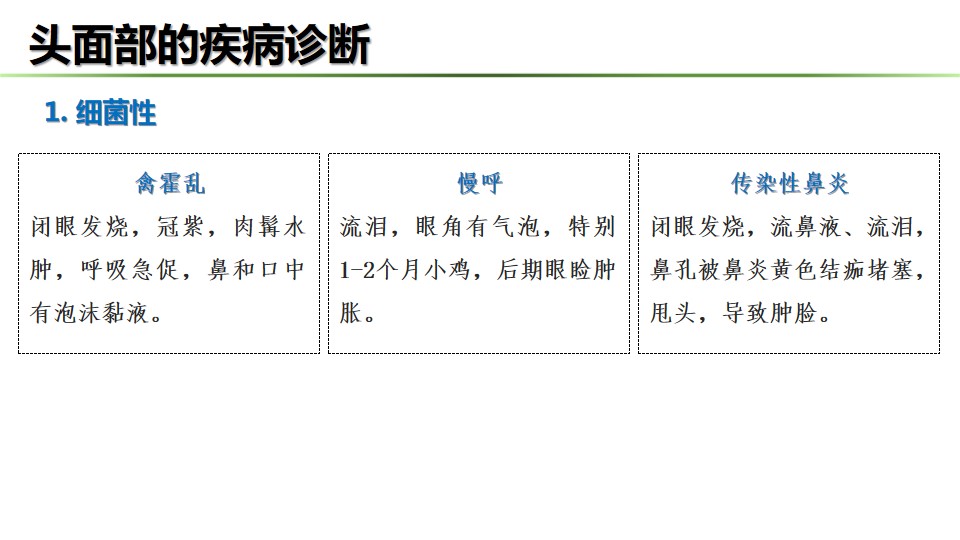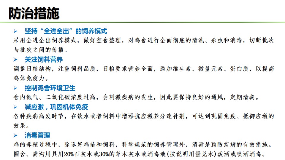 防控家禽頭面部異常疾病,可以從生產(chǎn)中多用中藥做好預(yù)防保健,減少應(yīng)激,鞏固機(jī)體免疫功能著手。臨床中,不同原因引起的頭面部異常疾病有針對(duì)性的使用對(duì)應(yīng)的中藥產(chǎn)品進(jìn)行防治:
