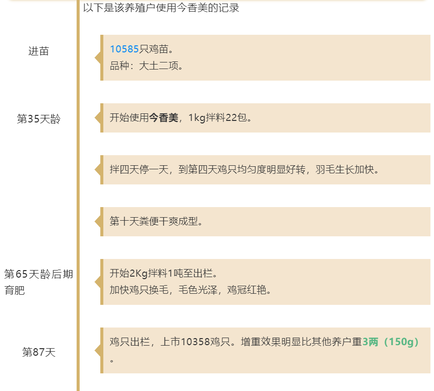 以下是該養(yǎng)殖戶使用今香美的記錄:
