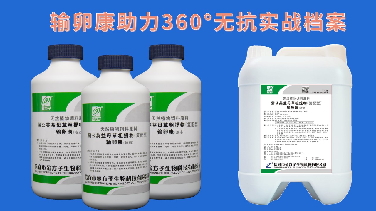 輸卵康助力360°無(wú)抗實(shí)戰(zhàn)應(yīng)用:高山輸卵康500ml/5L兩款包裝,是一款專(zhuān)為應(yīng)對(duì)蛋禽輸卵管的抗生素問(wèn)題而研發(fā)的產(chǎn)品,主要成分是益母草、蒲公英、黃芪等,助力于減輕輸卵管炎癥、助力于卵泡生成和發(fā)育,助力于恢復(fù)輸卵管損傷、應(yīng)對(duì)不用抗菌產(chǎn)品問(wèn)題等特點(diǎn)。