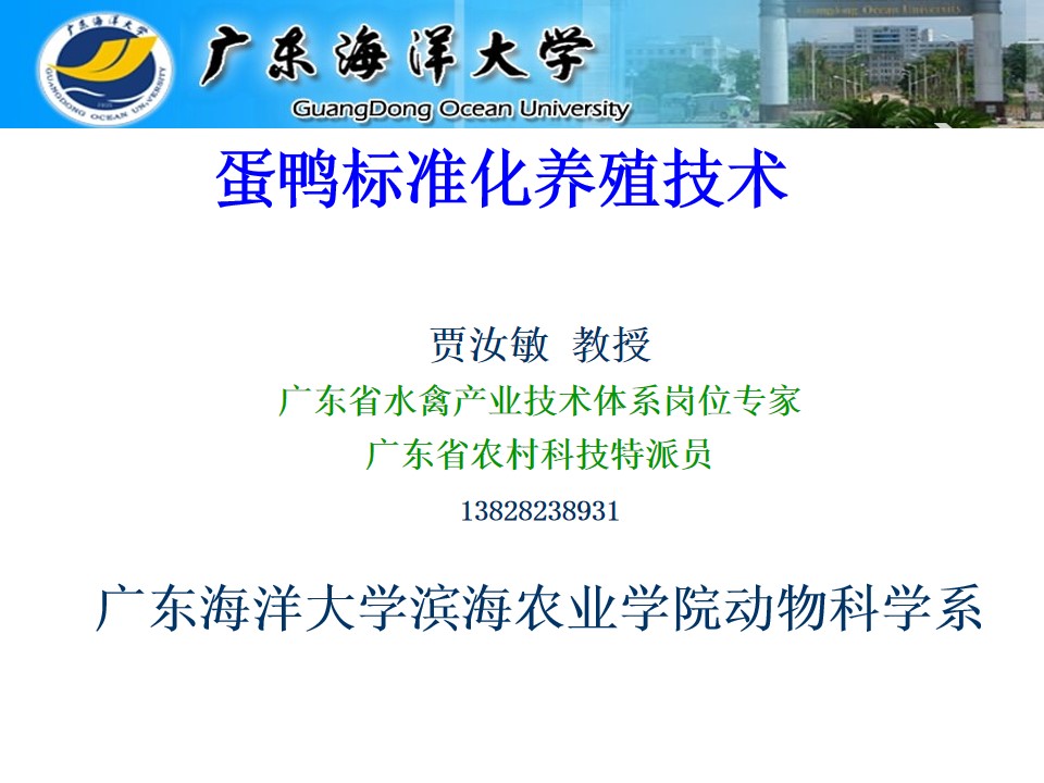 廣東省水禽產(chǎn)業(yè)技術(shù)體系崗位專家、廣東省農(nóng)村科技特派員、廣東海洋大學(xué)濱海農(nóng)業(yè)學(xué)院動(dòng)物科學(xué)系賈汝敏教授通過(guò)視頻會(huì)議作《蛋鴨標(biāo)準(zhǔn)化養(yǎng)殖技術(shù)》報(bào)告,首先詳細(xì)介紹我國(guó)蛋鴨產(chǎn)業(yè)現(xiàn)狀和蛋鴨的品種,深刻剖析蛋鴨的標(biāo)準(zhǔn)化養(yǎng)殖技術(shù),同時(shí)指出蛋鴨養(yǎng)殖面臨的主要問(wèn)題及原因是產(chǎn)蛋量不高、平均體重不夠、整齊度不好、產(chǎn)蛋高峰期短、發(fā)病多發(fā)病急、蛋鴨淘汰早和鴨不掙錢(qián),最后分享了蛋鴨高產(chǎn)穩(wěn)產(chǎn)的關(guān)鍵是全程使用高山中藥無(wú)抗大健康養(yǎng)殖預(yù)防保健方案。