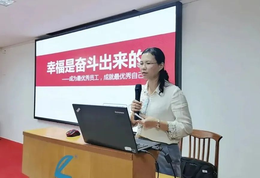 高山集團副總經理、東東蛋業(yè)總經理黎來鳳作《幸福是奮斗出來的》講話,勉勵大家要成為最優(yōu)秀的員工,成就最優(yōu)秀的自己,首先要具備獨當一面,獨立工作的能力,還要把握機會,創(chuàng)造機會,并且要有終身學習的心態(tài)。