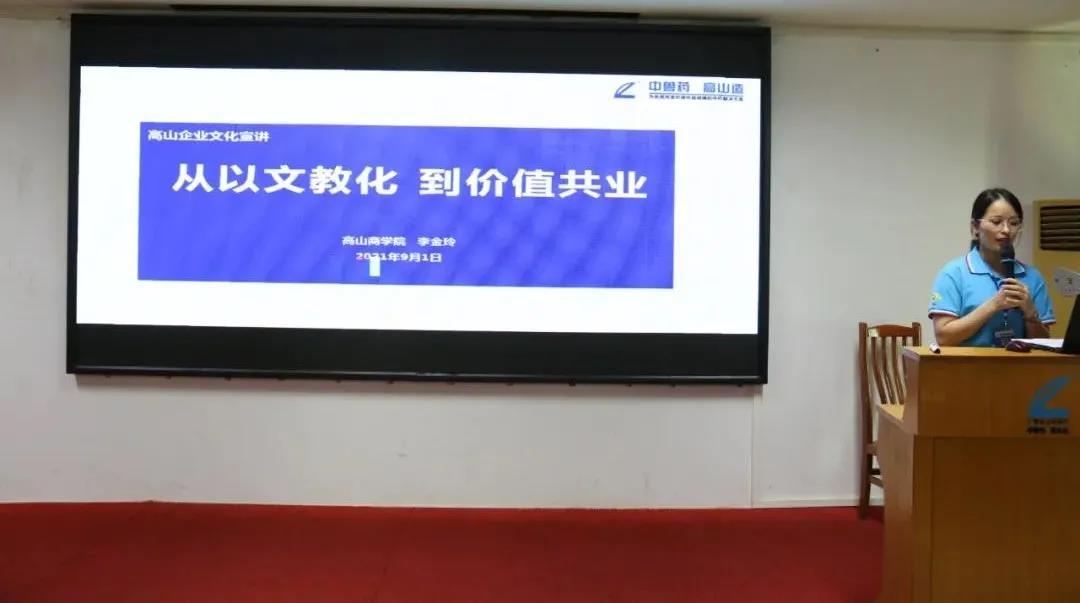 高山商學(xué)院李金玲對《企業(yè)文化及管理制度》作了宣講,分別從高山文化、形神行、與企業(yè)共成長作了詳細(xì)的講解。