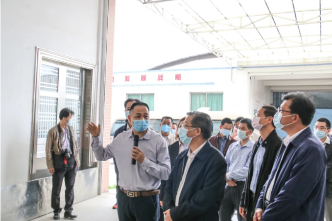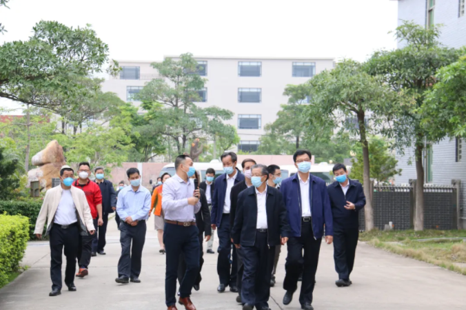2020年4月14日下午,廣東省工業(yè)和信息化廳廳長涂高坤、鄭勇明副廳長等一行到高山集團(tuán)調(diào)研考察指導(dǎo)工作,茂名市委常委黃玉華、信宜市委書記羅漢杰、信宜市市長王土瑞、信宜市委副書記梁小東等一行陪同,高山集團(tuán)董事長梁其佳作匯報(bào)介紹。