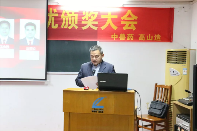 財(cái)務(wù)副總丘安立為技術(shù)中心、生產(chǎn)中心、中藥提取車間和中藥散劑車間頒發(fā)“優(yōu)秀團(tuán)隊(duì)”獎(jiǎng)