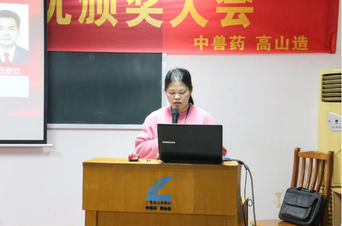 財(cái)務(wù)副總丘安立給獲得“優(yōu)秀GMP標(biāo)兵”員工頒獎(jiǎng)