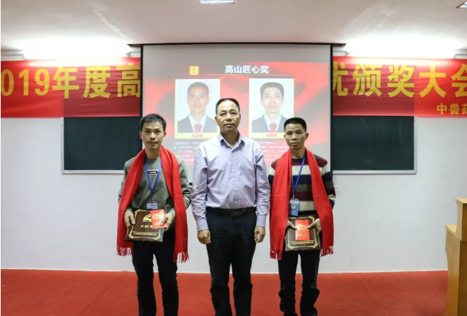 集團(tuán)董事長(zhǎng)梁其佳和財(cái)務(wù)副總丘安立為獲得“高山楷模獎(jiǎng)”員工頒獎(jiǎng)