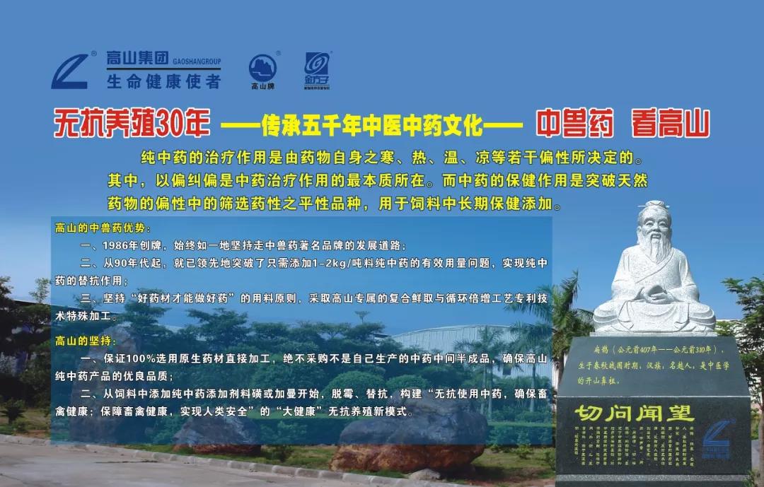 高山,始終堅(jiān)持傳承五千年中醫(yī)岐黃文化、傳遞健康養(yǎng)殖和理性消費(fèi)新風(fēng)尚和傳播中國原創(chuàng)中藥大健康養(yǎng)殖產(chǎn)業(yè)發(fā)展理念,健康傳世界為己任。追求卓越品質(zhì),傳承中醫(yī)中藥文化,創(chuàng)造健康美好生活,是高山人的永恒追求。在養(yǎng)殖過程中,推廣“前置預(yù)防和溯源保健”理念,從飼料中添加天然植物飼料添加劑保健開始,實(shí)現(xiàn)無抗、營養(yǎng)、健康、安全的生態(tài)健康養(yǎng)殖,是我們的核心理念。