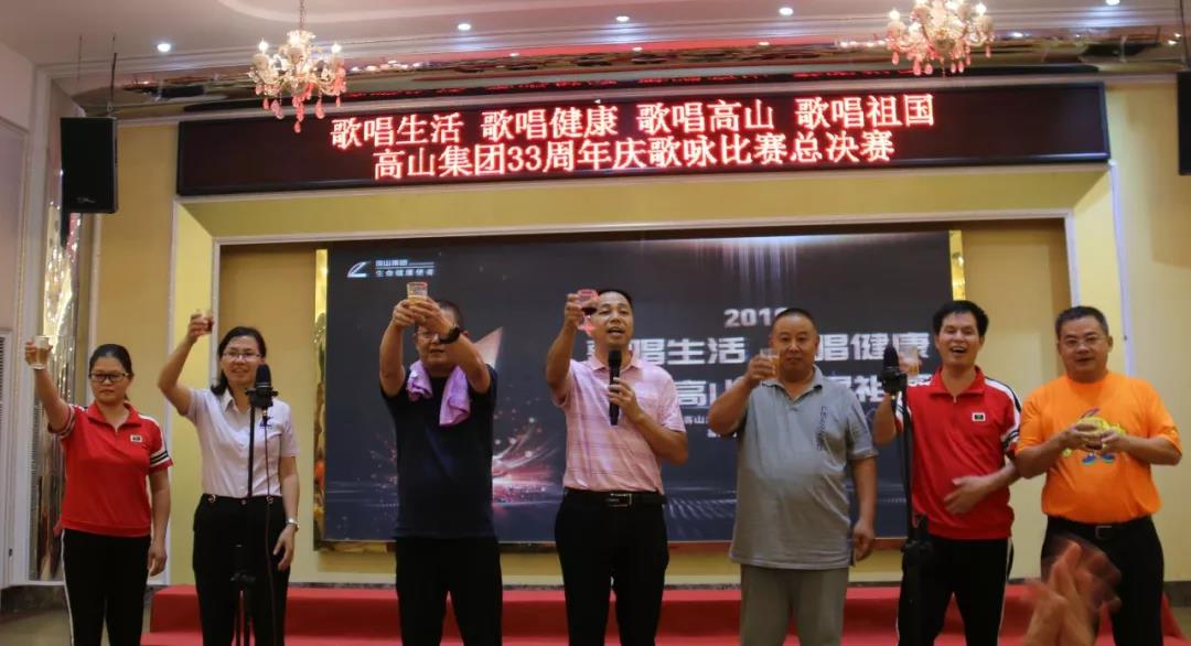 時(shí)光如水,歲月如歌。高山集團(tuán)從揚(yáng)帆起航到滿載星光,攜手共進(jìn),風(fēng)雨兼程,拼博奮斗,輝煌成就,2019年6月25日迎來了創(chuàng)牌33周年的喜慶時(shí)刻。值第二季度營銷會議暨高山集團(tuán)創(chuàng)牌33周年之際,高山集團(tuán)舉辦了“歌唱生活,歌唱健康,歌唱高山,歌唱祖國”歌詠比賽為高山慶祝生日,參會人員及高山大家庭成員共百余人參加了晚宴。