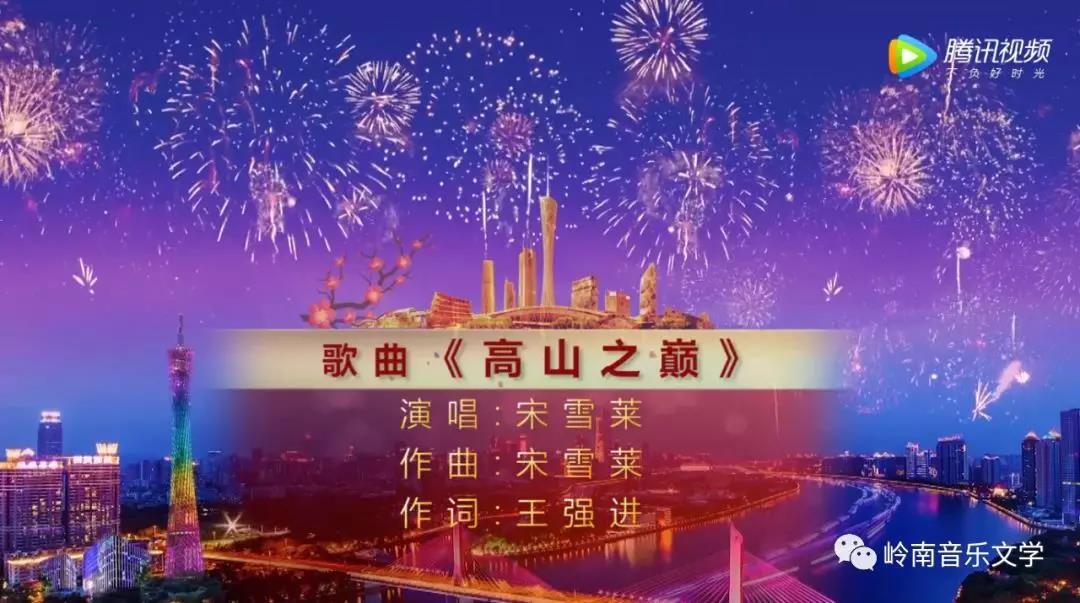 2019年2月2日至2月19日,2019中國城市春晚在全國百家城市電視臺滾動播出,播出時間橫跨整個春節(jié),受眾面廣泛,預(yù)計收視人群高達(dá)5億,成為一道亮眼的迎新春文化大餐。廣東省青年詞作家王強(qiáng)進(jìn)作詞、著名歌手宋雪萊作曲并演唱的的勵志歌曲《高山之巔》登上2019中國城市春晚。