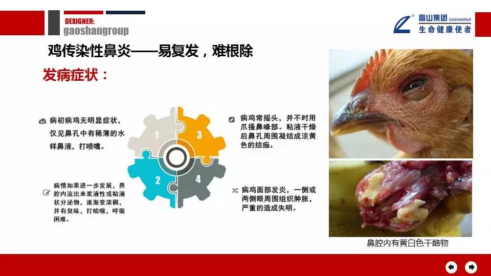 3、白冠病和傳染性鼻炎。這兩個(gè)病貫穿春夏秋冬季節(jié),交錯(cuò)流行。從3月開始,長江流域,從5月開始,黃河流域發(fā)生較多。傳播速度快,死亡率高,生產(chǎn)性能丟失多,是這個(gè)病的共性,損失巨大。用高山鼻原康,鼻原康發(fā)病即用,按4kg/噸,重證8kg/噸,連用5天,用了馬上見效,與磺胺類藥成本對(duì)比相差不大,且效果最確切。