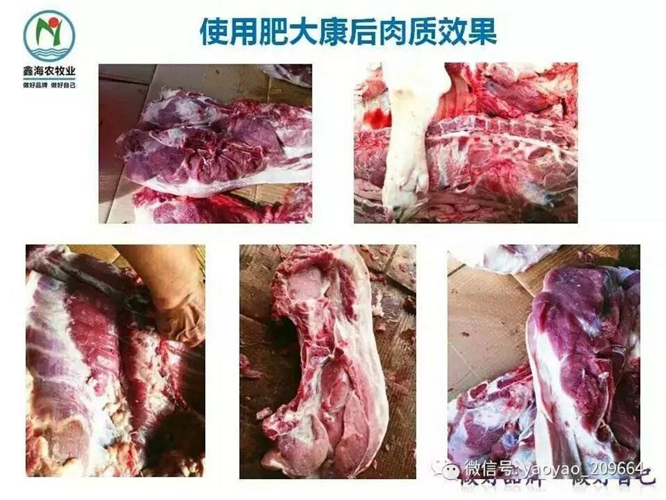 案例1:廣西*******,受到很多養(yǎng)戶的認(rèn)可和信任。1月14日廣西玉林惠信動(dòng)保就舉行了一場(chǎng)史上最接地氣的“肥大康”豬肉品嘗會(huì),當(dāng)場(chǎng)宰殺一頭使用肥大康喂養(yǎng)的大豬,養(yǎng)6.5個(gè)月,毛重358斤,酮體重299斤,酮體率83.5%,養(yǎng)戶說(shuō)從來(lái)沒(méi)養(yǎng)過(guò)這么重的豬,非常滿意!使用中藥產(chǎn)品增重和改善肉質(zhì)風(fēng)味,整體豬群出欄體重均提升到300斤,效果確切,完全可行。