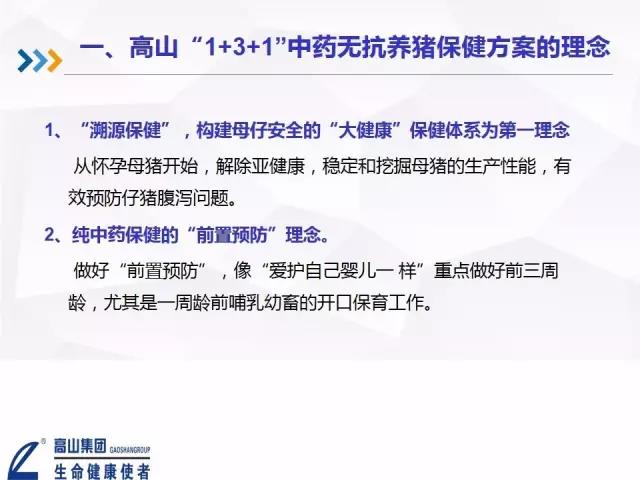 交流會(huì)主要圍繞中藥在實(shí)現(xiàn)無(wú)抗養(yǎng)豬方面的應(yīng)用進(jìn)行,高山集團(tuán)技術(shù)顧問(wèn)李毅老師結(jié)合在臨床中的經(jīng)驗(yàn),向與會(huì)人員詳細(xì)介紹分享了高山“1+3+1”中藥無(wú)抗養(yǎng)豬保健方案。 與會(huì)人員也暢所欲言,針對(duì)使用高山中獸藥應(yīng)對(duì)豬群的保健和治療等提出了交流意見(jiàn)。