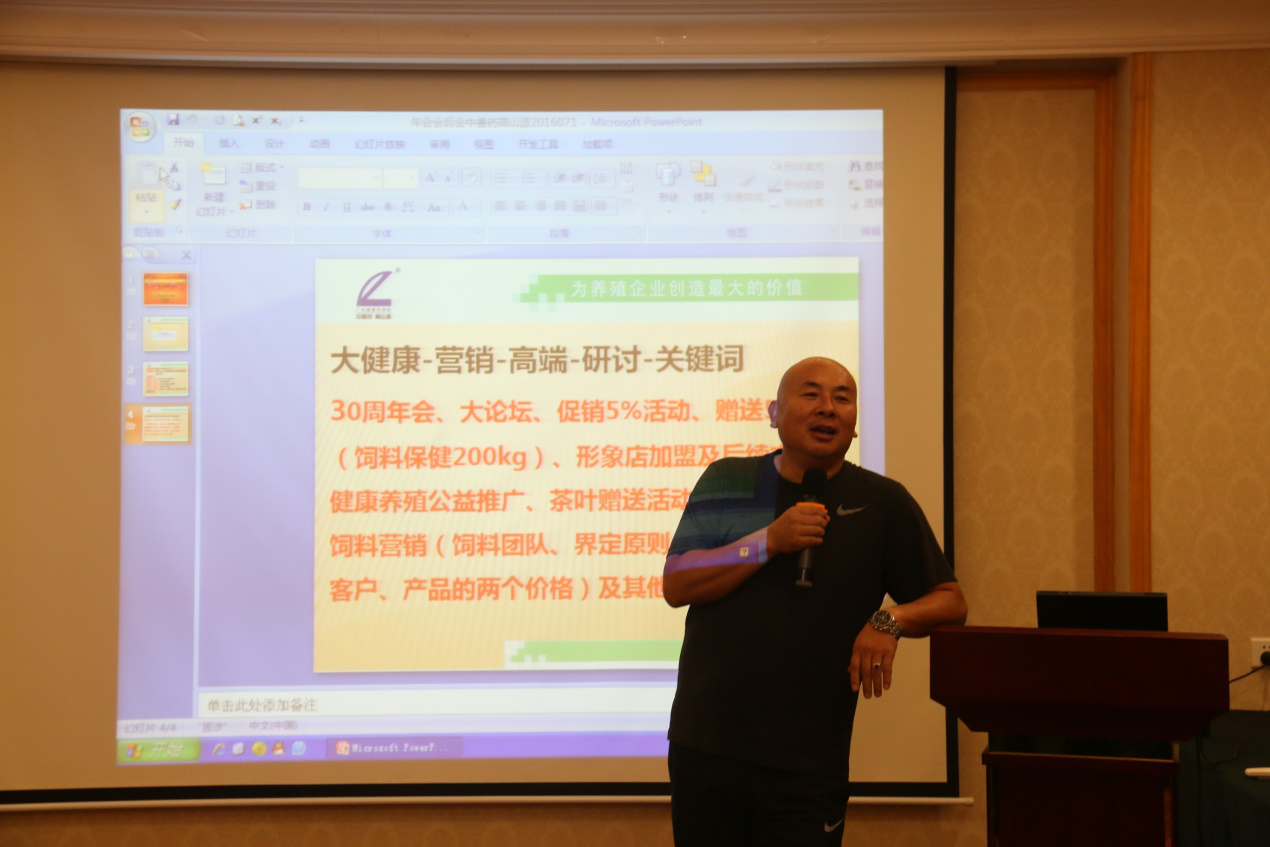 山東楊立堂經理分享:山東肌腺胃炎很普遍,”高山粵威龍+料磺1號“用的很好。前期能用上我們推薦方案的效果都很好,后期基本都沒有肌腺胃炎,也沒有安卡拉病發(fā)生,對比養(yǎng)殖效益顯著。正冠樂和高山粵威龍的銷量非常大,圓藍粵威龍和弓蟲粵威龍預防效果很好。另外,年會對我們的工作有很大的幫助。在論壇上發(fā)起的在養(yǎng)殖企業(yè)的養(yǎng)殖消費環(huán)節(jié)推廣《健康養(yǎng)殖》公益推廣“千家掛萬牌活動”掛牌匾公益牌匾活動響應積極,現(xiàn)山東已有60多家養(yǎng)殖企業(yè)要掛牌。