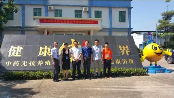 廣西玉林水產(chǎn)畜牧業(yè)協(xié)會(huì)龐宏志會(huì)長(zhǎng)(右三)、廣西金陵集團(tuán)黃雄董事長(zhǎng)(左四)與公司高層在金方子合影