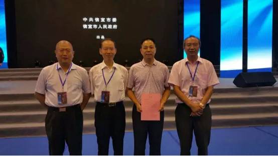 中國畜牧獸醫(yī)學(xué)會(huì)夏有彩副秘書長(zhǎng)、吉林大學(xué)韋旭斌教授、中國畜牧獸醫(yī)學(xué)會(huì)中獸醫(yī)分會(huì)穆詳會(huì)長(zhǎng)向高山集團(tuán)贈(zèng)遞中國畜牧獸醫(yī)學(xué)會(huì)中獸醫(yī)分會(huì)賀信合影