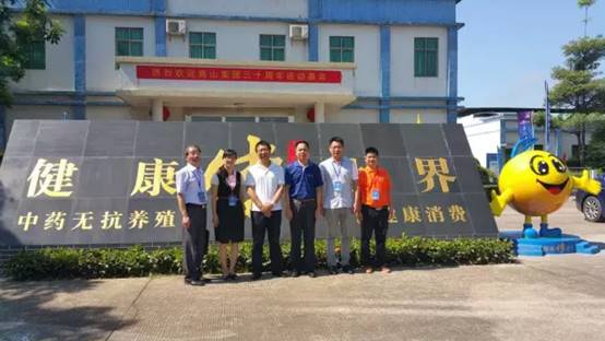 廣西玉林水產(chǎn)畜牧業(yè)協(xié)會龐宏志會長(右三)、廣西金陵黃雄董事長(左四)與公司高層在金方子合影