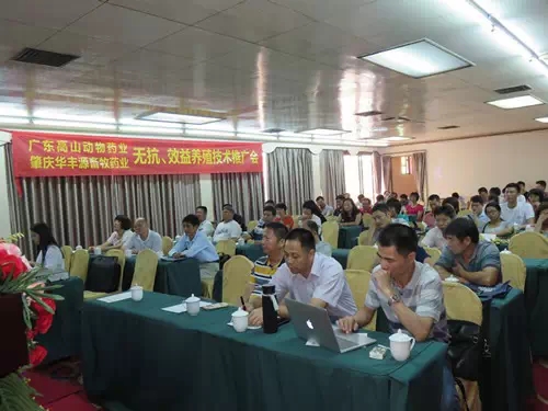 在2015華南(肇慶)畜牧業(yè)博覽會啟動之際,5月13日,高山集團率先在肇慶松濤賓館舉辦了關于“控制核心養(yǎng)殖成本,實現(xiàn)高利潤倍增——高山純中獸藥效益養(yǎng)殖優(yōu)化方案”的技術推廣會,與飼料企業(yè)、經(jīng)銷商、養(yǎng)殖場老板近100人展開討論。