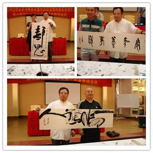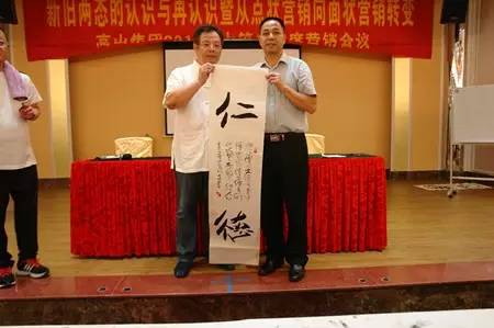 會(huì)議期間,大家飲享中國(guó)養(yǎng)生茶文化,品嘗高山養(yǎng)生茶,還盛邀中國(guó)書(shū)法家協(xié)會(huì)會(huì)員、中國(guó)書(shū)畫(huà)名家協(xié)會(huì)理事、中南海紫光閣書(shū)畫(huà)院長(zhǎng)、北京子書(shū)畫(huà)院院長(zhǎng)吳子書(shū)書(shū)法家和茂名市神州書(shū)畫(huà)家協(xié)會(huì)副主席、信宜分會(huì)常務(wù)副主席兼秘書(shū)長(zhǎng)、茂名市信宜文化藝術(shù)中心常務(wù)副主任彭奕海書(shū)法家一起蒞臨會(huì)場(chǎng),題字“仁德”,妙筆生輝!題字“民族的,世界的“,勉勵(lì)高山無(wú)抗生命健康事業(yè),在2015年?duì)I銷業(yè)績(jī)同比增長(zhǎng)的大勢(shì)上,再創(chuàng)輝煌。