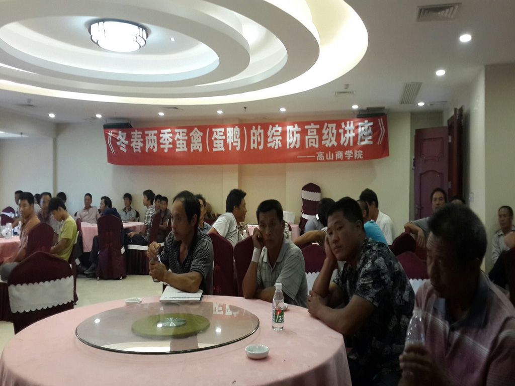 2013年10月12日-14日,高山集團梁董事長與彭激夫教授在惠東益牧獸藥有限公司公司舉行了高山商學院講座分享——《冬春兩季蛋禽(蛋鴨)的綜防高級講座》。
