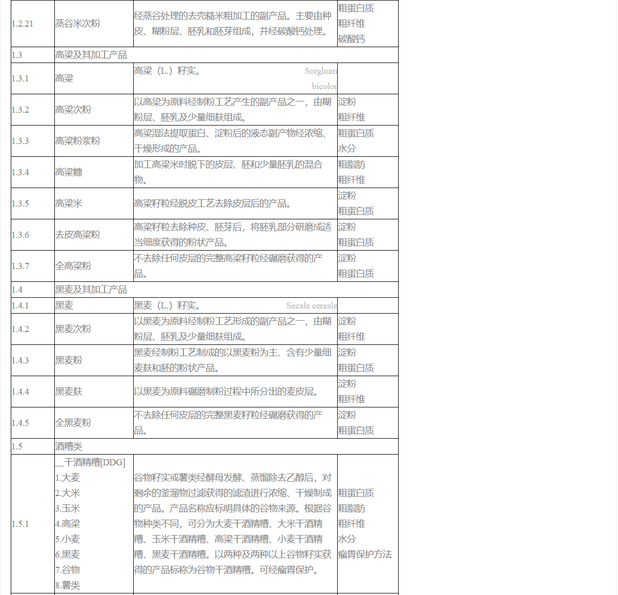 7. 目錄中所列原料,并不意味著企業(yè)可以任意無(wú)限量地使用,有些原料含有天然生物毒素,如棉籽粕等,企業(yè)應(yīng)根據(jù)飼喂對(duì)象和原料特點(diǎn)進(jìn)行合理選擇和使用。