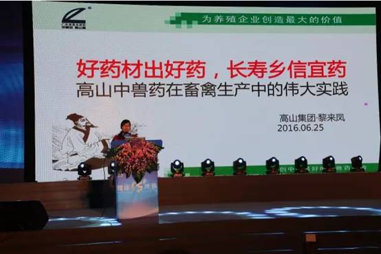 高山黎來(lái)鳳作了題為《高山中獸藥在畜禽生產(chǎn)中的偉大實(shí)踐》的報(bào)告,介紹高山集團(tuán)現(xiàn)狀、優(yōu)勢(shì)及未來(lái)的構(gòu)想。黎來(lái)鳳稱,中獸藥,高山造。高山踐行生命健康使者的企業(yè)發(fā)展使命,健康傳世界。未來(lái)的高山,將全心全意為全產(chǎn)業(yè)鏈服務(wù),為健康安全服務(wù),為大指標(biāo)化服務(wù),為無(wú)抗飼料服務(wù),為效益養(yǎng)殖服務(wù)和為大健康產(chǎn)業(yè)服務(wù)。
